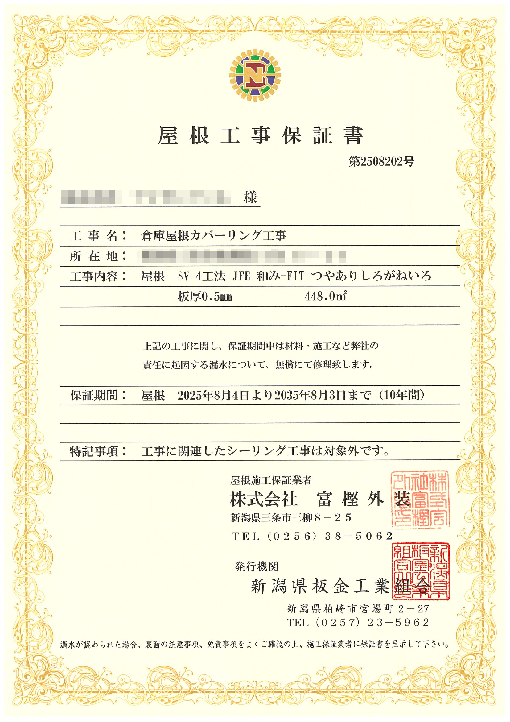 新規屋根材「SV-4T法」で施工しました。