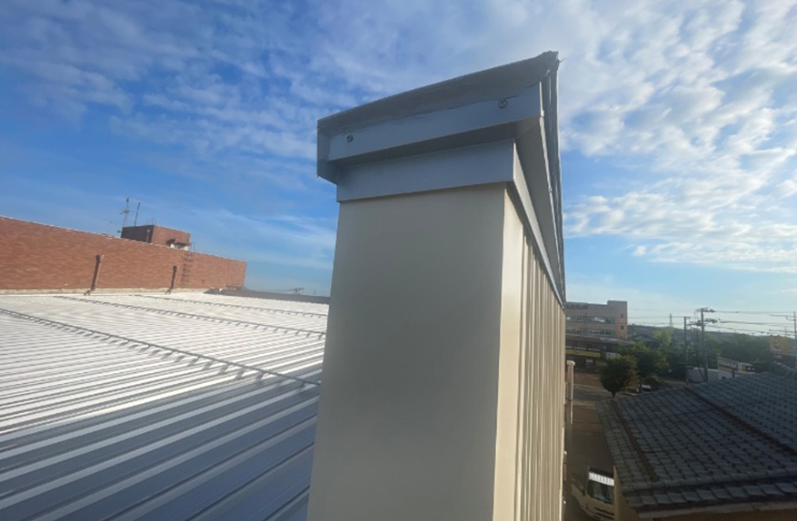 笠木はカバーで巻きました。パラペット裏の外壁もカバーリングしました。