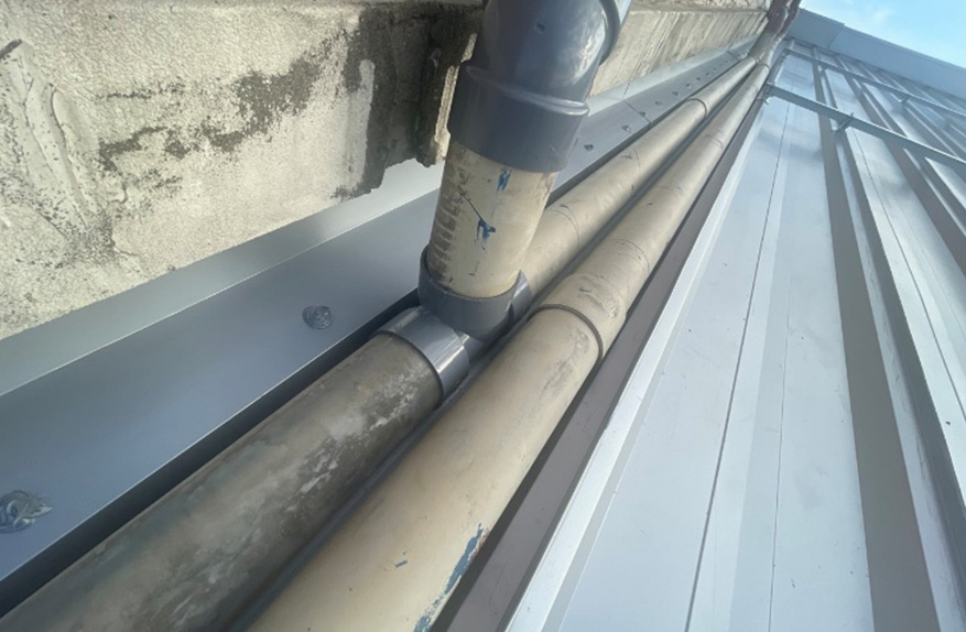 屋上からの排水パイプがあり施工のしにくさが懸念されましたが、排水パイプを一度取り外して工事を行いました。