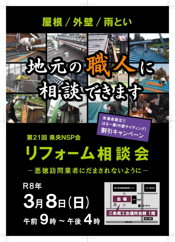 令和8年3月8日に第21回県央NSP会リフォーム相談会を開催します。